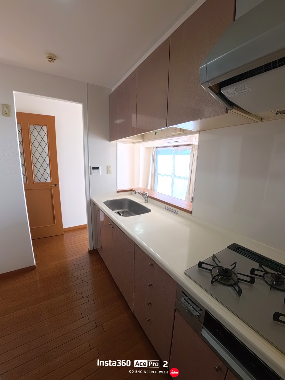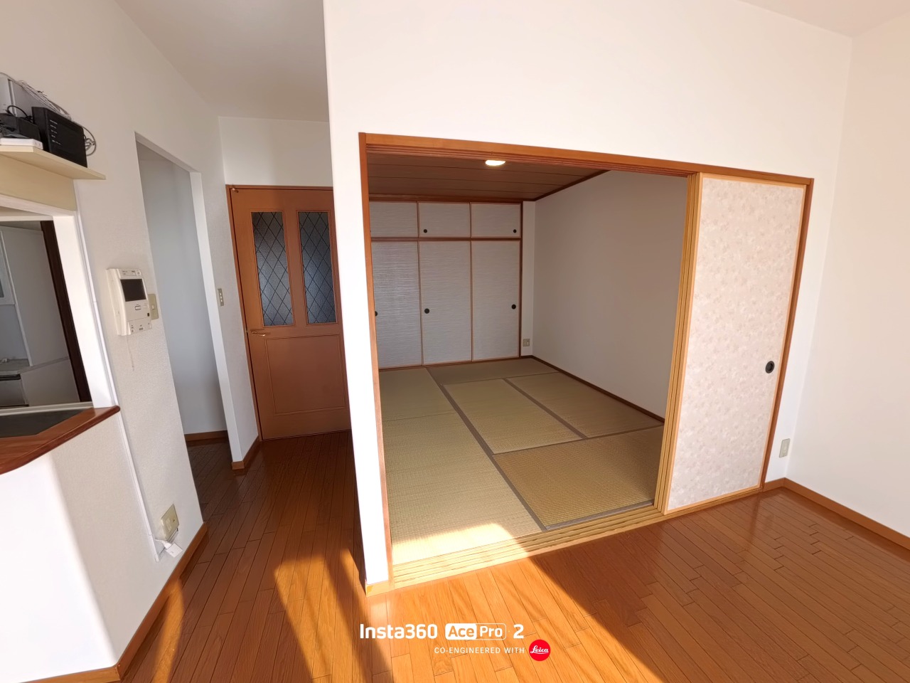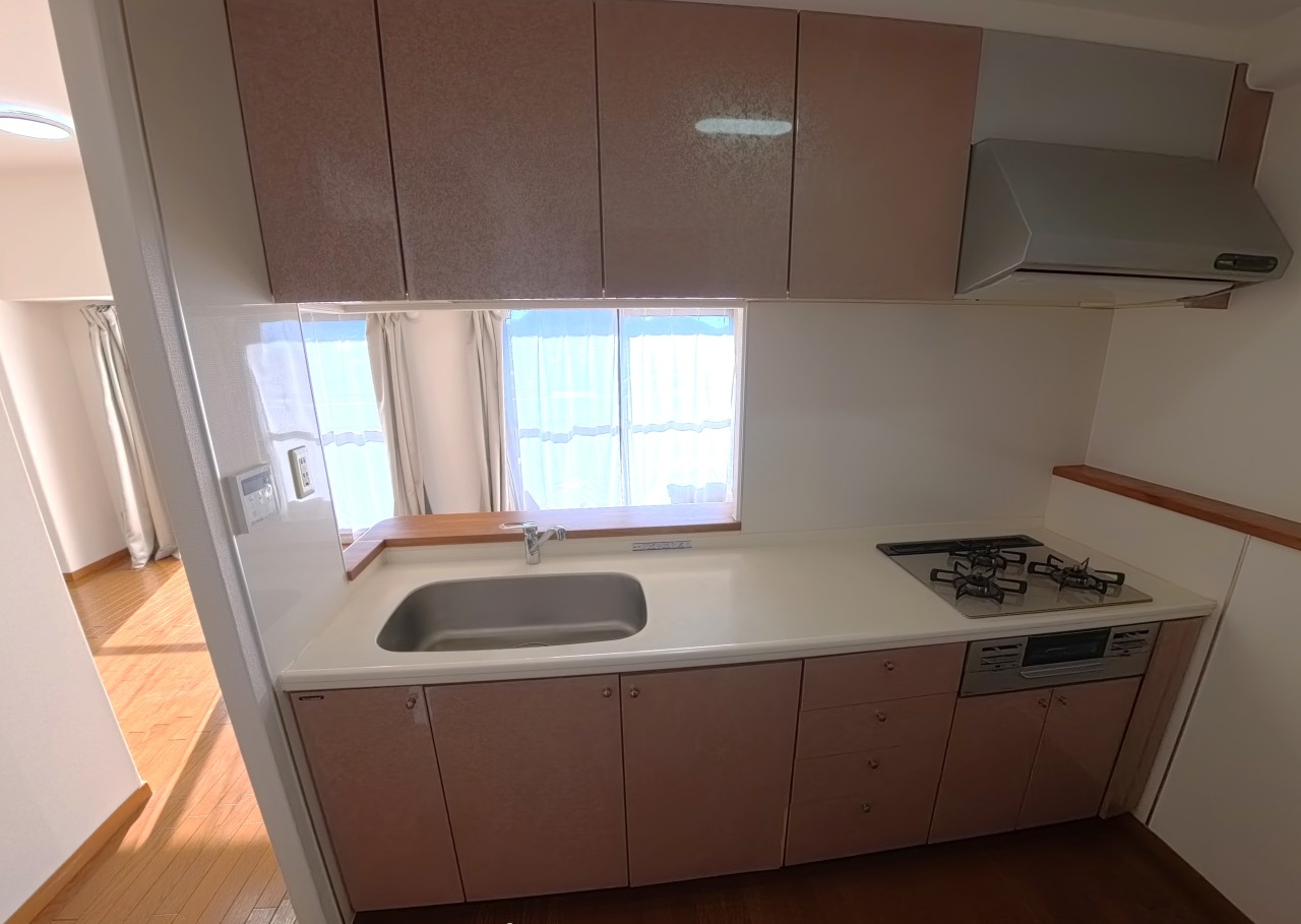 対面式キッチンとリビング続きの和室、2つの洋室を備えた、