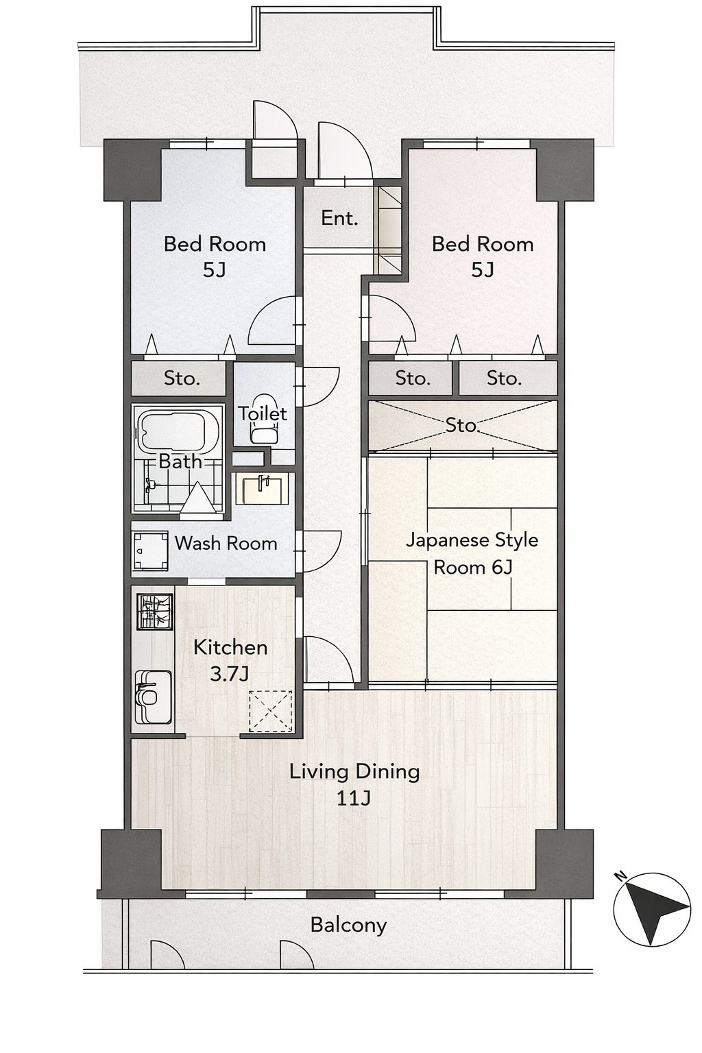 | 専有面積 | 68.56㎡(公簿)72.10㎡(壁芯) | ||