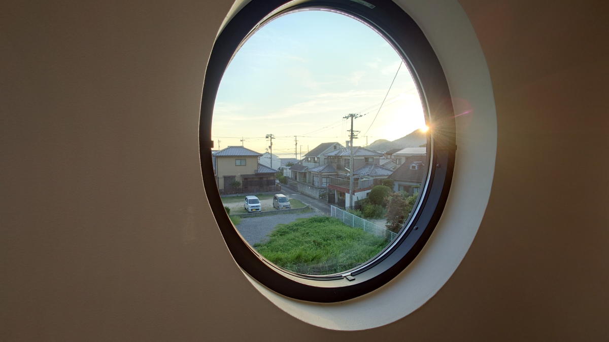 丸窓から見える海、夕陽に染まる庭、地下空間にただよう独特の雰囲気。